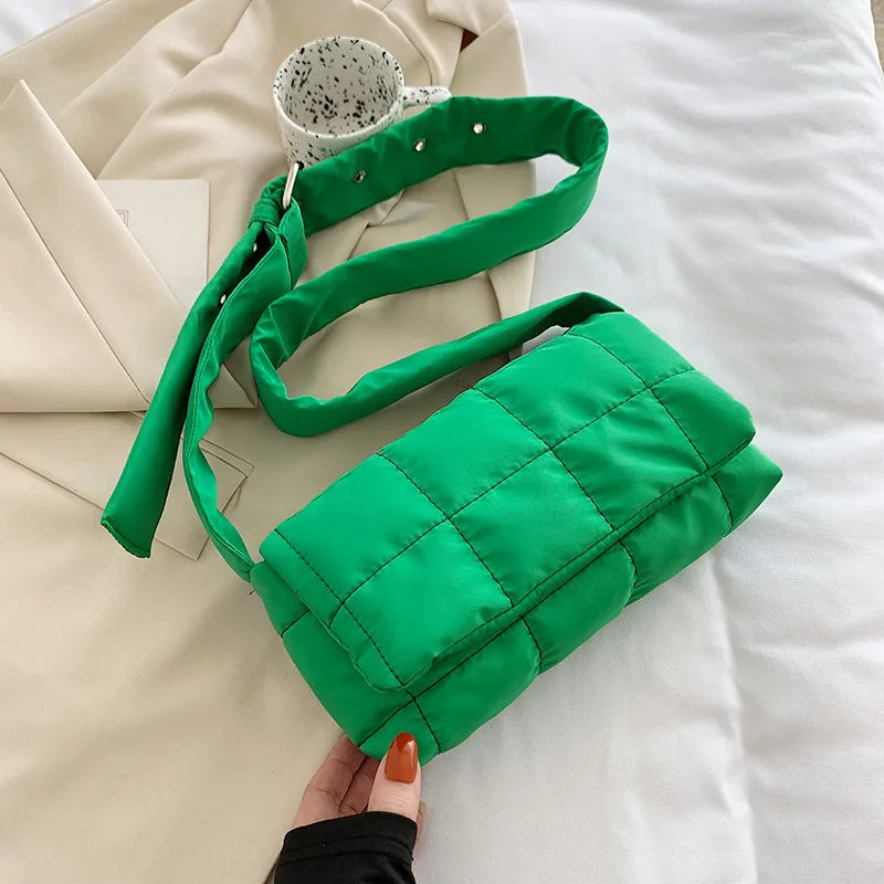 Descubra a perfeita combinação de estilo e funcionalidade com a Bolsa Tote Puffer em Nylon Acolchoado. Feita com uma mistura de algodão e nylon acolchoado, esta bolsa oferece um toque de conforto e proteção para todos os seus itens essenciais.
