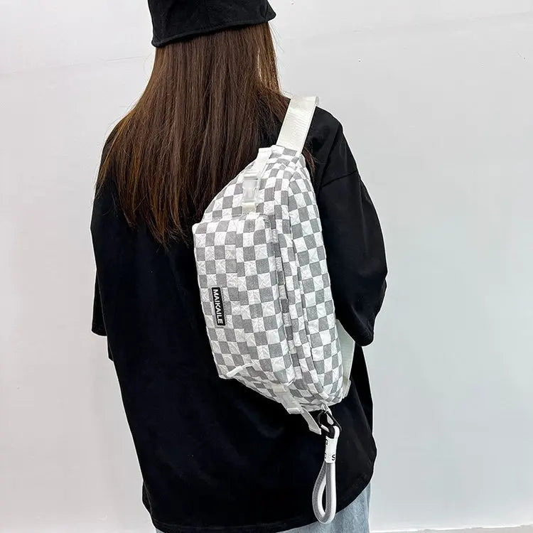 Combine moda e praticidade com esta bolsa transversal no estilo Harajuku. Com design xadrez elegante e contemporâneo, ela é perfeita para mulheres que buscam um acessório versátil para o dia a dia. Ideal para transportar telefone, carteira e outros itens essenciais, esta bolsa pode ser usada como shoulder bag, crossbody ou pochete, se adaptando ao seu estilo e necessidade.