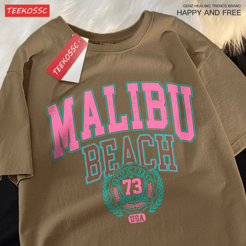 Entre na vibe descontraída de Malibu com nossa camiseta estampada! Confeccionada em algodão macio, ela proporciona conforto e leveza durante todo o dia. A estampa vibrante e alegre traz um toque de frescor, ideal para seus passeios à beira-mar ou encontros com os amigos.