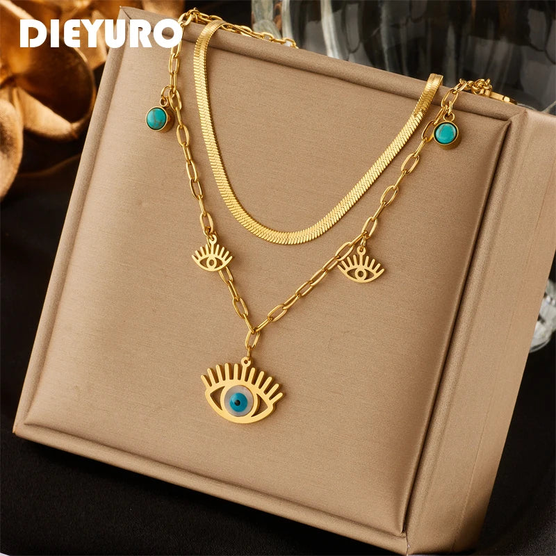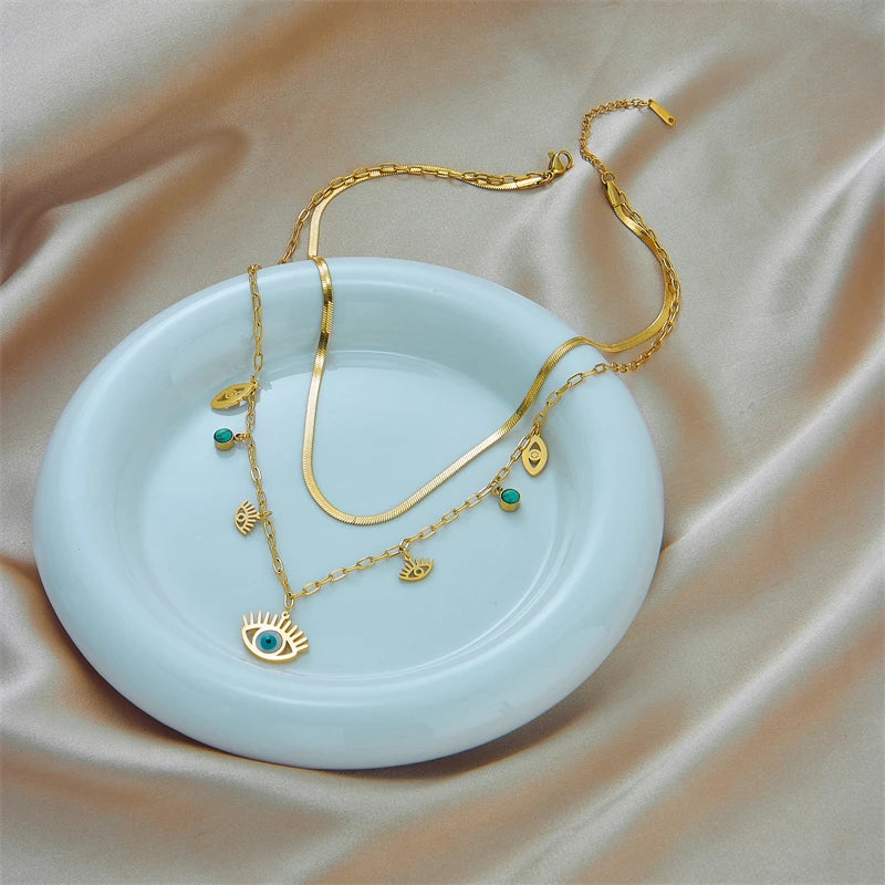 Colar com Pingente Azul Olho Grego Proteção