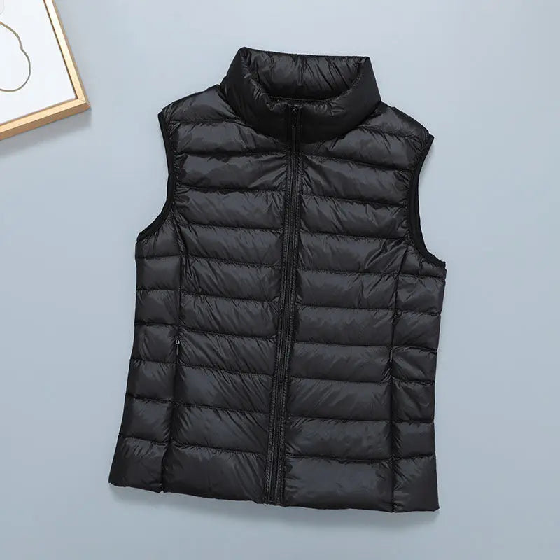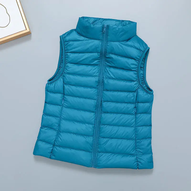 Para quem busca estilo e praticidade o ano todo, o Colete Leve Elegance é a peça ideal! Com design moderno e atemporal, este colete feminino é feito com um enchimento suave de penas de pato branco e tecido de poliéster resistente e confortável, oferecendo a proteção perfeita contra ventos e temperaturas moderadas.