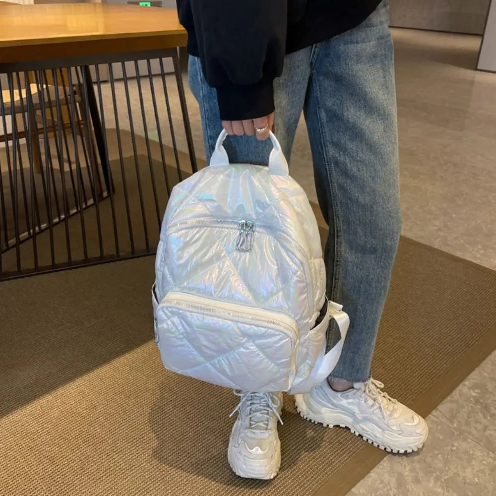 Descubra a Mochila Fashion Style, a combinação perfeita de elegância e funcionalidade para a mulher moderna. Feita em nylon de alta qualidade, essa mochila é leve, resistente e disponível em várias cores sofisticadas, incluindo rosa, dourado, preto, prateado e branco. Com dimensões de 36x27x17 cm, oferece espaço suficiente para carregar seus itens essenciais com estilo.