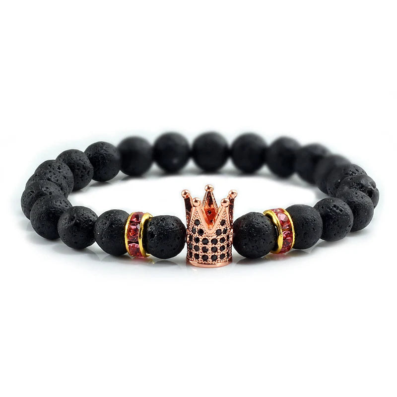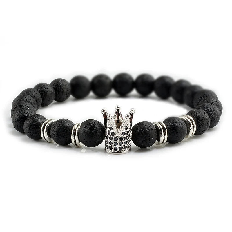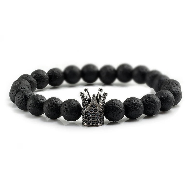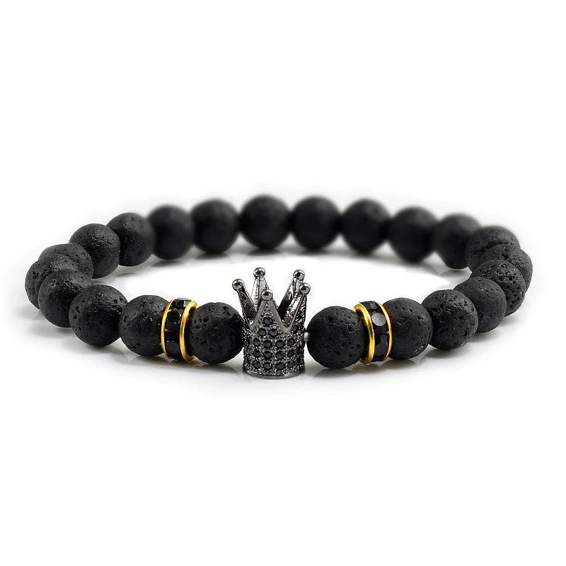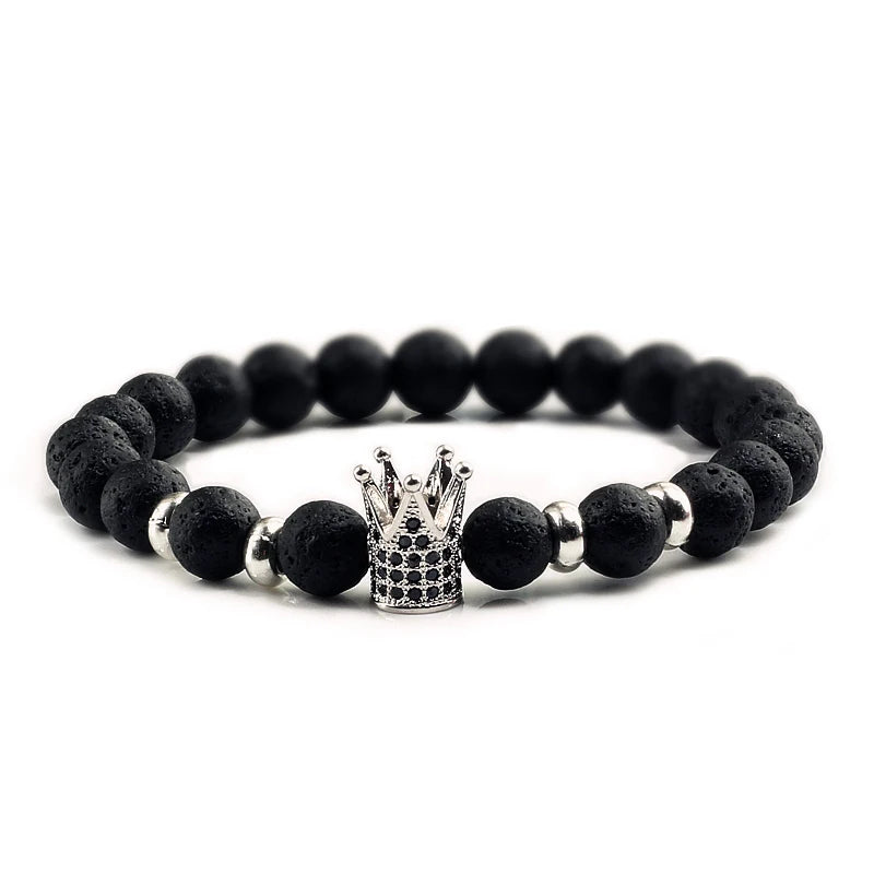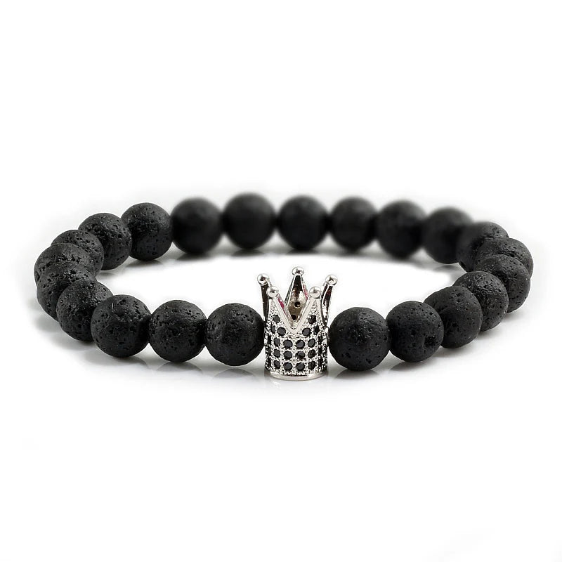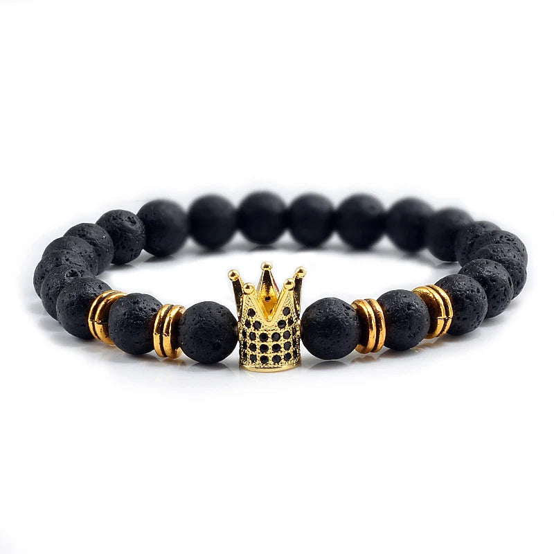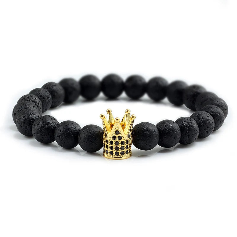 Pulseira de Pedra Vulcânica Natural e Coroa